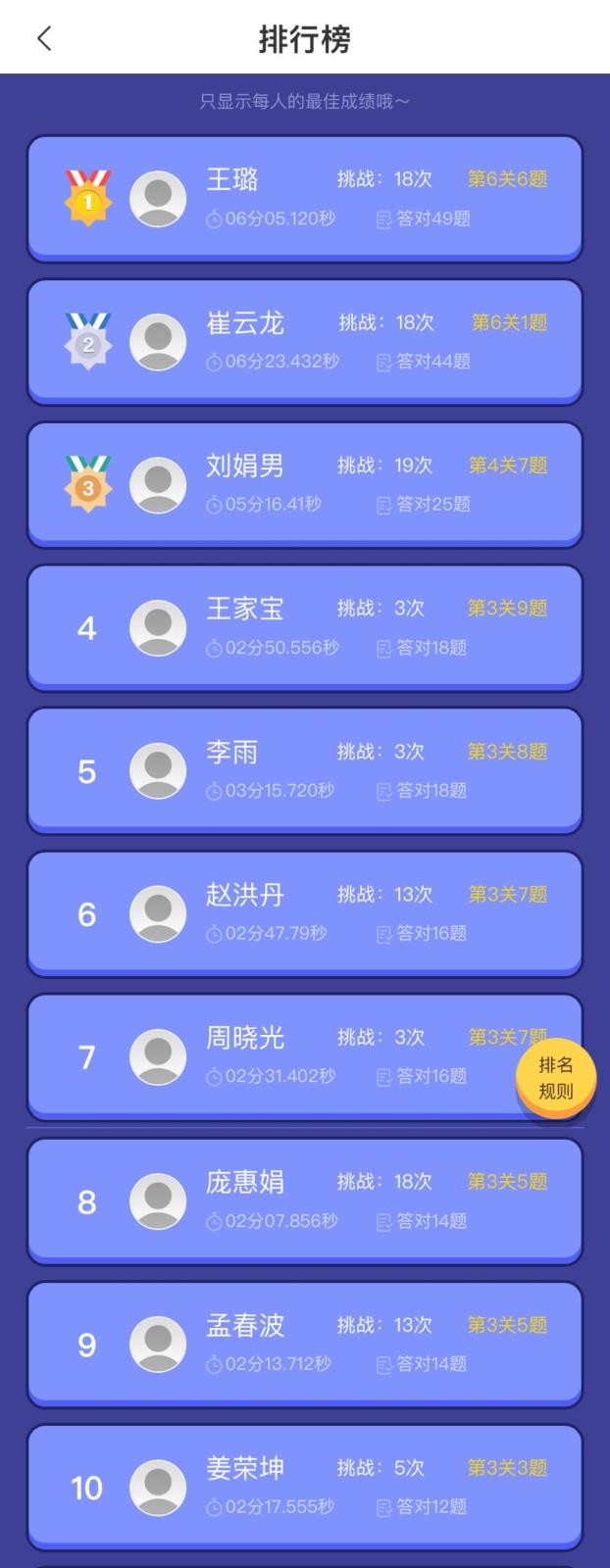 通過開展綜合知識答題賽,實現(xiàn)質(zhì)量法規(guī)、專業(yè)知識、規(guī)章制度、企業(yè)文化的再次普及和宣貫活動。綜合知識答題賽第一階段的賽事歷時15天,有近千人次參與答題,積分排行榜排位更是你追我趕,截至8月31日,分包裝室的王璐以答對49題的成績奪得了初級“答”人賽的第一名。